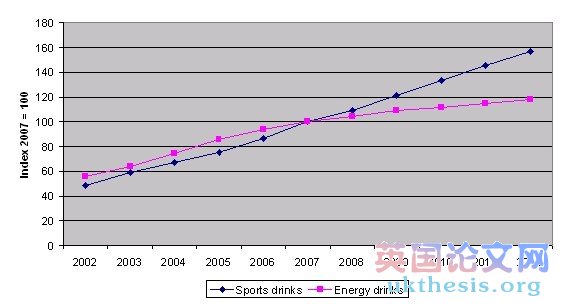The sports and energy drinks market has continued its dynamic growth path I past few years, which reach £773 million sales, market value growth of 11% in 2006. The market is expected to exceed £800 million in 2007 (Figure 2.4.1). Sports drinks have a wider appeal than energy drinks, consumer interest in healthy lifestyles including exercise may be one of the reasons of the market expansion. According to Sports Drinks and Sports Nutrition–UK Mintel report, September 2005, consumer interest in healthy lifestyles incorporating exercise is the primary driver of the increased sales of sports drinks.