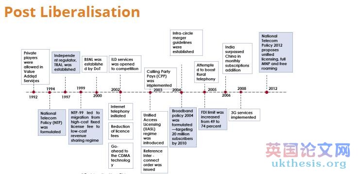 在印度,电信是国家经济和社会发展的主要力量之一,这导致了20多年来成功的“增长”的故事,这是在过去的几十年里,在美国的经济发展中,在过去的几十年里,美国的经济增长一直是导致了全球经济增长的主要原因。由于政府的积极努力,使印度成为全球电信枢纽,并审慎的监管支持,如国家电信政策1994,1997和2012。今天,印度以其强大的电信基础设施的用户数量,成为世界第二大电信市场.。数量达到9.33mn在mar14从2013 898mn用户(固定和移动电话)。呼叫资费是由于电话网络和顶级玩家之间的巨大竞争而造成的最低呼叫世界之一.。全国还有世界第三大互联网用户群。在本报告中,我们将尝试了解印度政府及其他监管机构所制订的规例及政策架构,而这正是导致电讯业空前增长的主要原因.。